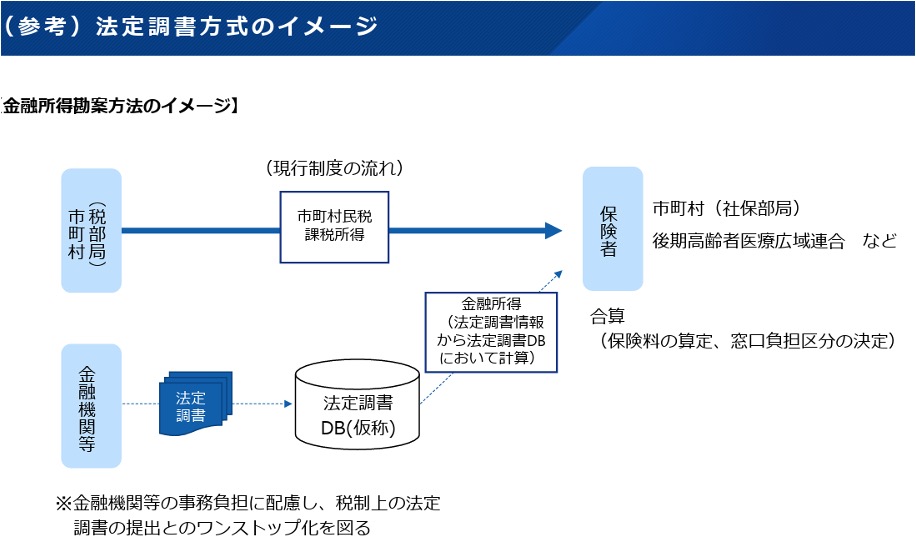 金融機関が税務署に提出する「法定調書」(支払調書)の情報を活用して、確定申告の有無にかかわらず、金融所得を保険料算定に反映させることが提案されています。