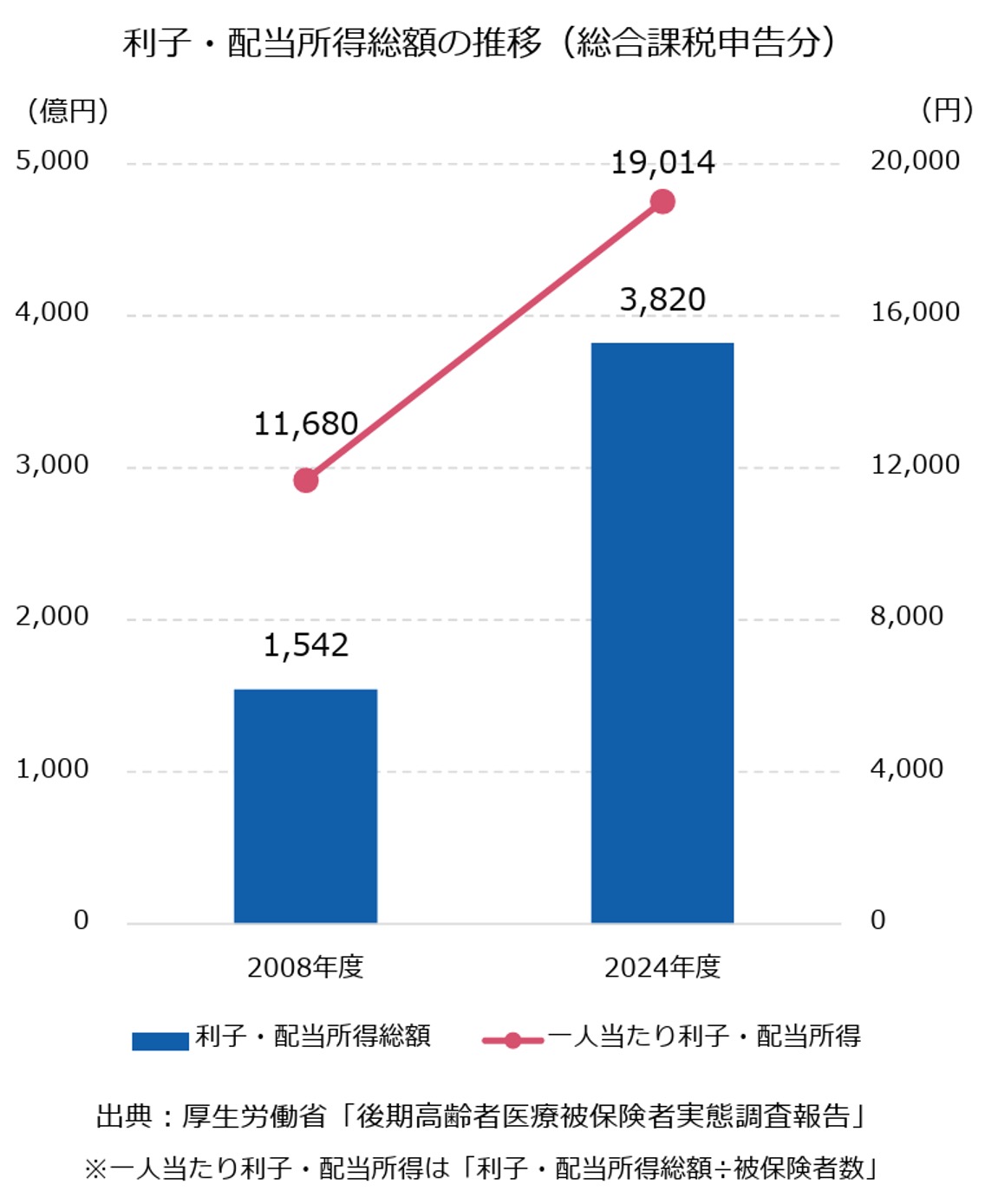 また、利子・配当所得については、高齢者の総合課税の利子・配当所得の増加がデータとして提示されています。