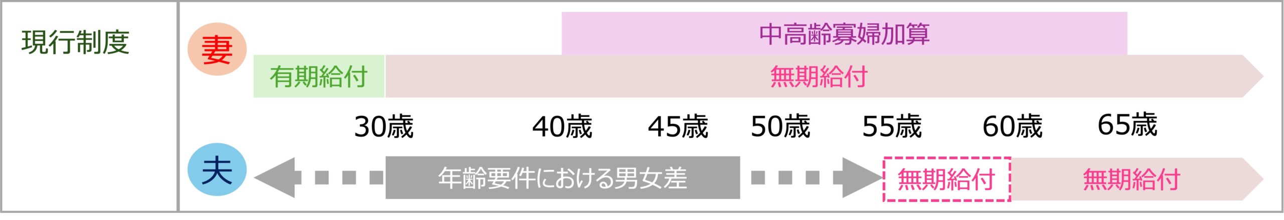 この後、5年毎に妻の有期給付対象年齢が引き上げられていきます。