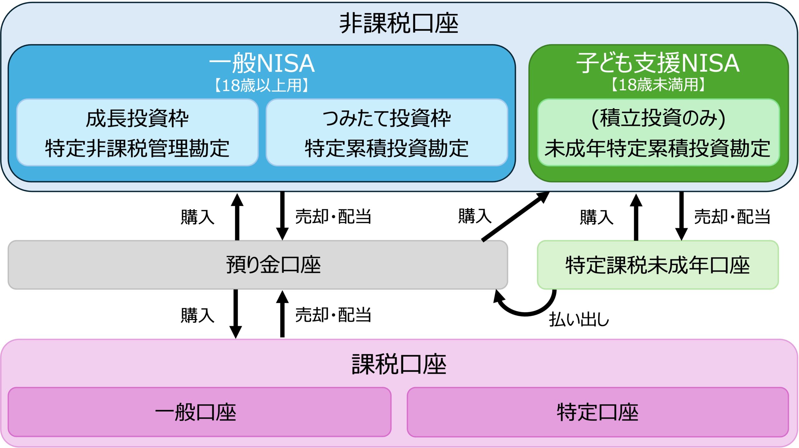 | 非課税保有期間 | 3月31日時点で18歳となる年(基準年)の 前年12月31日まで | 無制限 | |